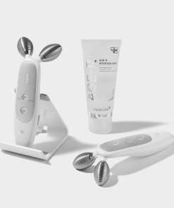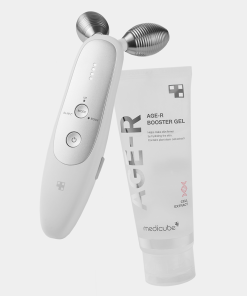 A. The Age-R Device operates by delivering medium-frequency energy, and therefore must be used with products that are capable of transmitting the frequencies. It is highly recommended that you use the dedicated gel serum that was developed alongside the device for best results. Medicube’s Booster Gel contains plant stem cell extract, which helps in the improvement of skin elasticity. *You can use other moisturizers but we recommend to use with our Booster Gel for the best results.