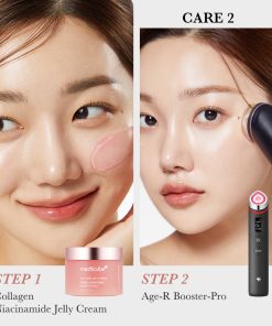 - Q. What are the recommended product combinations from Medicube? Care 1. Collagen Niacinamide Jelly Cream & Collagen Night Wrapping Mask Apply a generous amount of jelly cream and allow it to absorb. Layering a wrapping mask and leaving it on overnight can result in a noticeable increase in skin elasticity and radiance the next day. Care 2. Collagen Niacinamide Jelly Cream & Booster-H When used in combination with the innovative radiance device, Booster-H, you can experience intense radiance, deeply nourished skin, and a smoother complexion. *Please start using the device from level 1, as the highly moisturizing formulation can enhance conductivity.