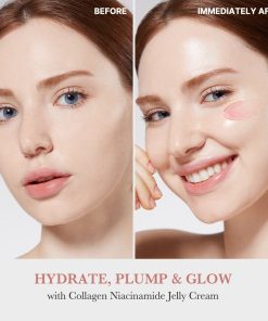 A transparent collagen jelly cream that provides anti-aging benefits to enhance facial contours, promote firmness, and achieve a polished and glowing complexion. Immediately after application, the skin restores its natural inner radiance with tightened, radiant, volumized ‘Korean Glass Glow’ effect.