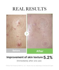 - Removal of sebum 21.1% Improvement of uneven skin tone 6.1% Improvement of skin texture 5.2% Skin moisture improvement: 68.16% Skin Redness improvement: 0.63%
