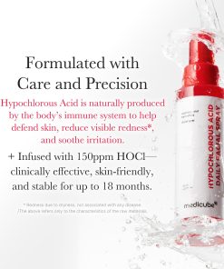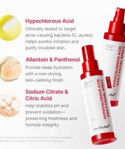 Facial toner spray contains 150ppm Hypochlorous Acid for soothing and purifying care, quickly soothes and purifies your skin, for a clearer glow and refreshing finish.Designed for acne-prone skin, helps calm irritation and purifies troubled skin.