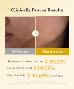- Appearance of uneven patches improved 3.13% Excess Sebum Levels improved 19.09%Dead Skin Cells improved 49.69%