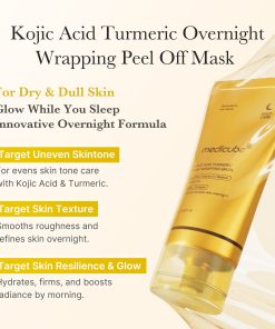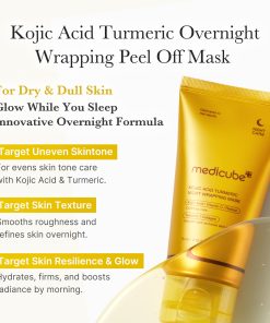 Protect and enhance your skin’s texture with Medicube’s Kojic Acid Tumeric wrapping film, delivering 8 hours of intensive care while you sleep. Wake up to visibly brighter, smoother, more even-toned, and glow skin. This gentle wrapping mask works overnight to nourish and achieves a radiant glow by morning. Easy to remove and gentle on your skin, it ensures a refreshed, luminous finish. Infused with turmeric and kojic acid to help refine uneven skin texture and improve hyperpigmentation. Plus, Hydrolyzed Collagen for elasticity and a youthful glow, which make lines and wrinkles less noticeable by moisturizing the skin.