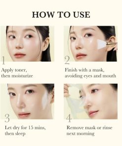 - 4. The next morning, gently remove the wrapping mask by peeling it from the edges or thoroughly rinse it off with lukewarm water to reveal refreshed skin.