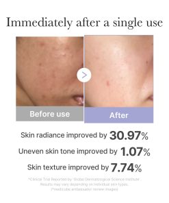Skin radiance improved by 30.97% Uneven skin tone improved by 1.07%Skin texture improved by 7.74%