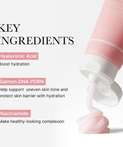 Salmon DNA PDRN Pink Hyaluronic Cream Salmon DNA PDRN pink moisturizing cream that hydrate deeply into the skin by improving skin barrier and boost skin elasticity while enhancing skin glow. Helps support uneven skin tone with Salmon PDRN and Hyaluronic acid : Salmon PDRN helps support uneven skin tone for clear complexion and Hyaluronic acid boost hydration for soothing and glowing Long lasting hydration : Maintain healthy skin barrier, provide deep hydration and smooth skin texture. Mild watery texture without stickiness : absorb moisture deeply inside the skin with lightweight watery texture. Lock hydration and quench skin thirst quickly without stickiness.