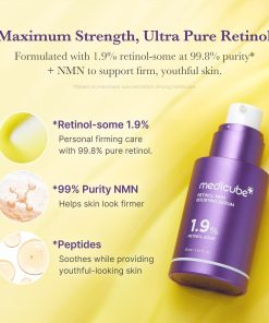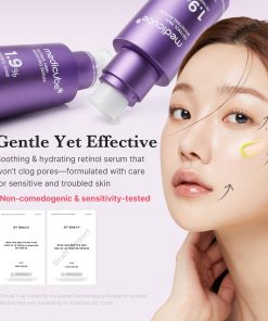 Low-irritating Retinol serum to target fine lines and wrinkle supporting skin’s natural firmness for a bouncier, more resilient look99.8% purity patented retinol-some 1.9% + 99% purity NMN – Powered by a 5-Synergy Complex for multi-dimensional and lont-lasting skin firming.Designed with low-irritation technology, this intensive retinol serum delivers high efficacy while maintaining skin comfort. Gentle enough for sensitive and acne-prone skin