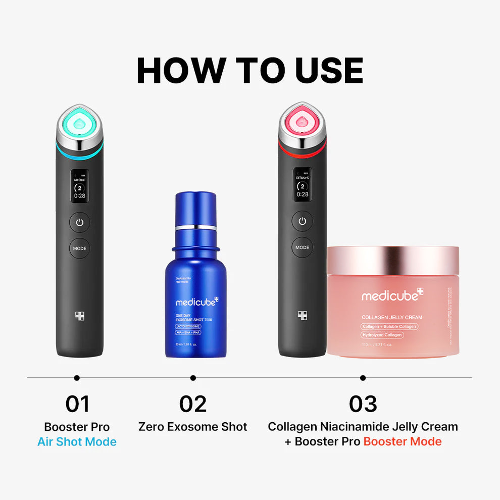 - Yes, all four modes can be used in one routine. Start with Air Shot on clean, dry skin before applying any skincare, then use Booster, MC, and Derma Shot with your regular skincare.